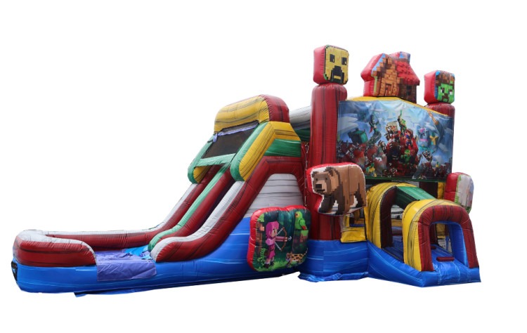 Level up your party with the Pixel Craft Combo! Designed with a fun, block-style theme, this inflatable features a large bounce area and an attached slide for nonstop action.