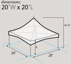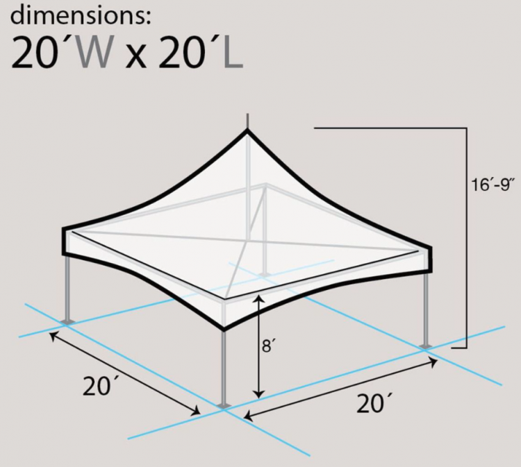 5ft Round Tables20' x 20' High Peak Tent Package (Black Chairs):5ft Round Tables1Dropdown41812151_27906631100 Tent String Lights20' x 20' High Peak Tent Package (Black Chairs):Tent String Lights1Dropdown01812151_27487030000 20' x 20' High Peak Frame Tent (Tent Only)20' x 20' High Peak Tent Package (Black Chairs):20' x 20' High Peak Frame Tent (Tent Only)1Dropdown11812151_25672831100 *Tents are typically delivered on the Thursday or Friday prior to the party date, but are only guaranteed for the duration of the party.